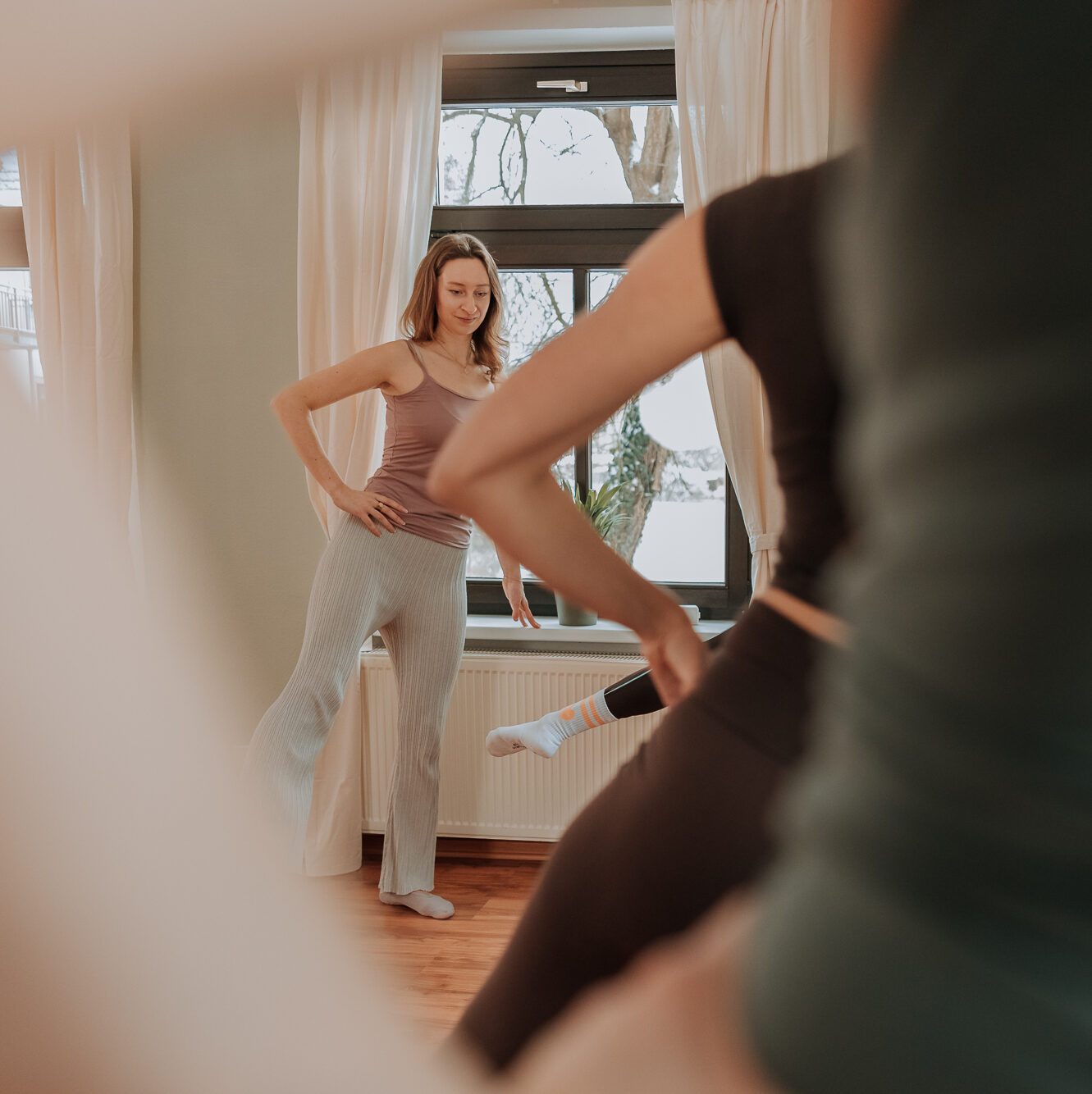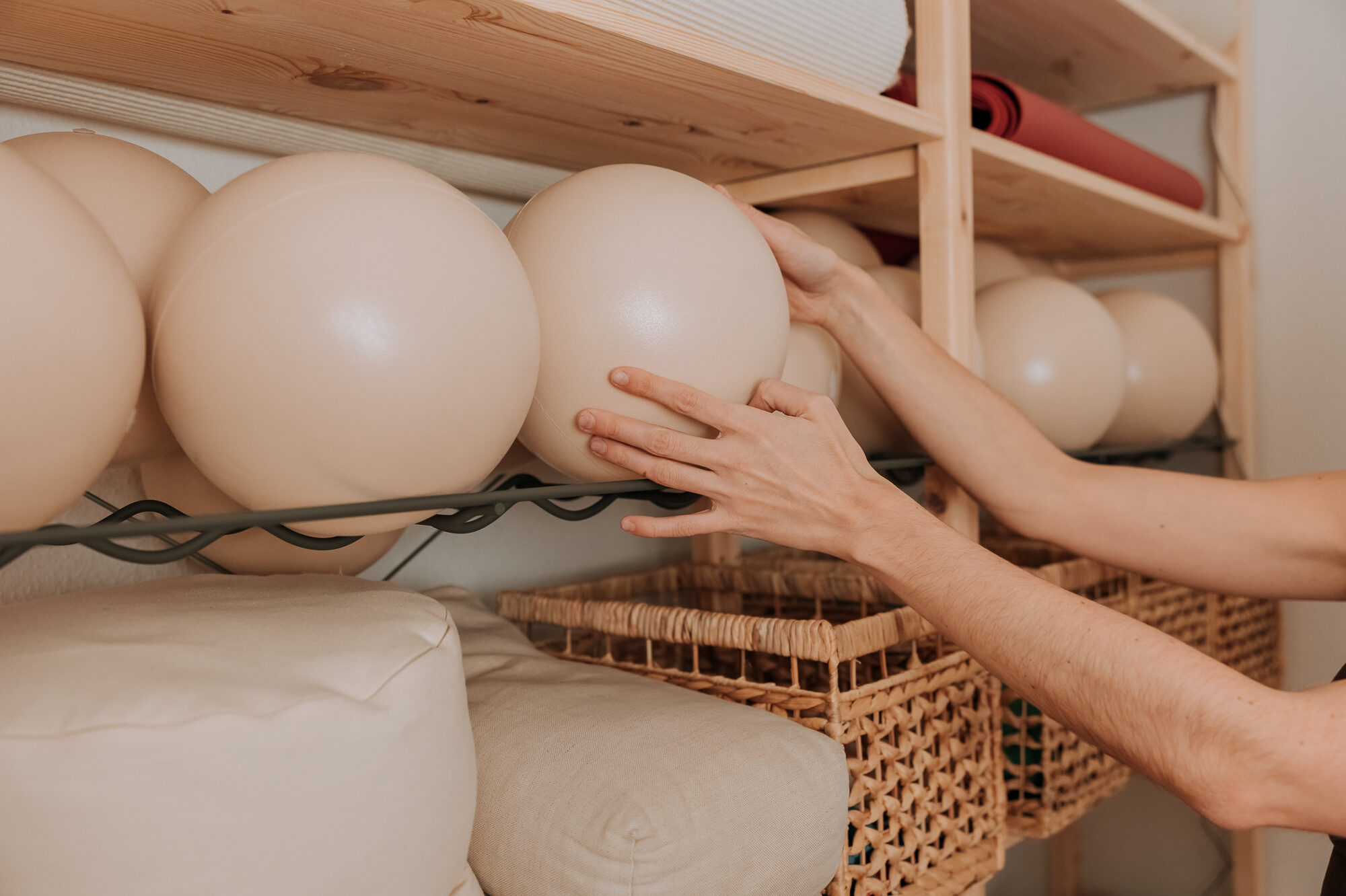 Unser Kursangebot reicht von dynamischem Barre-Training, über kraftvolles Pilates bis hin zu mobilisierenden und entspannenden Yoga.